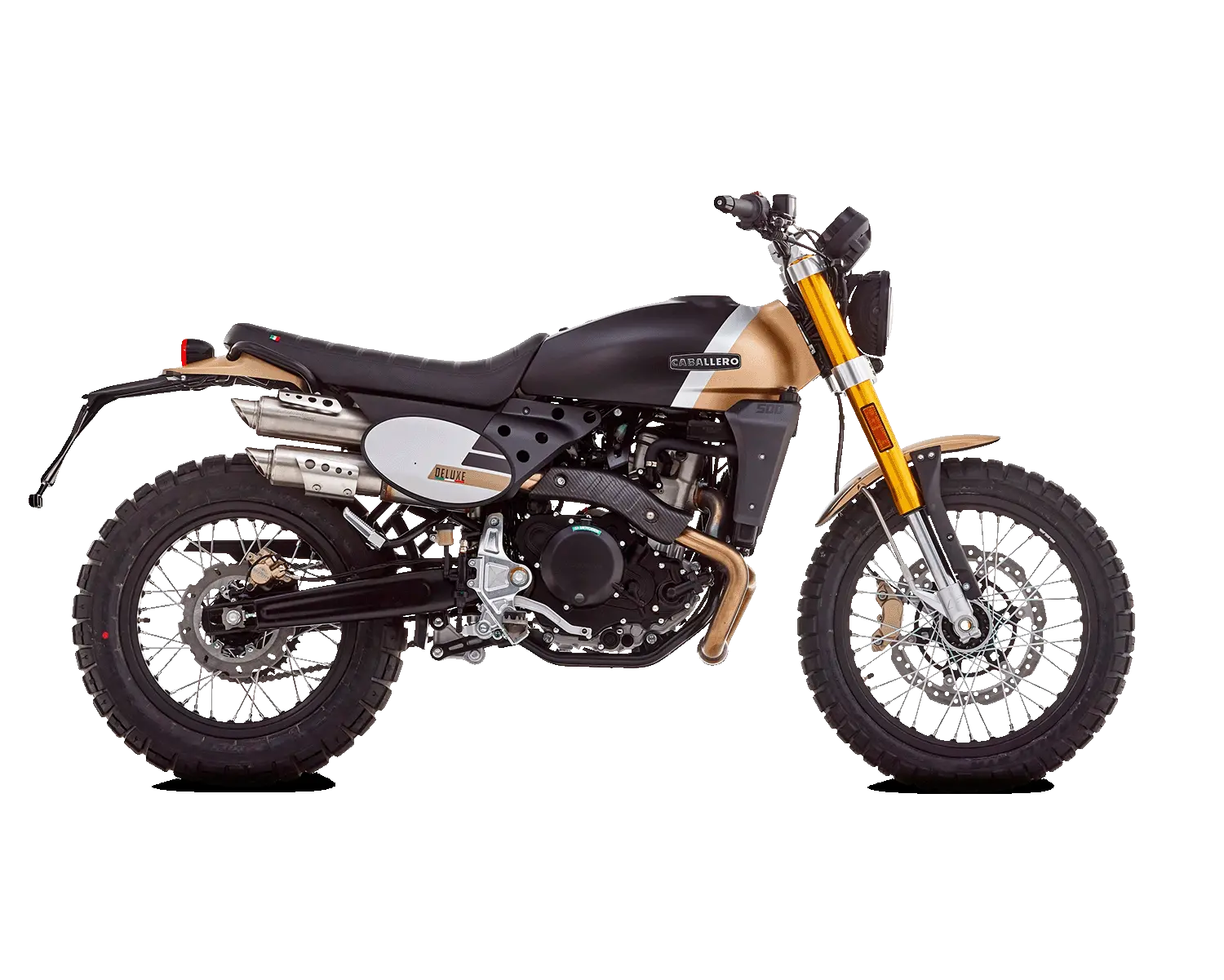 La Caballero Deluxe es perfecta para aquellos que quieran disfrutar de una experiencia off-road ligera en una moto elegante pero agresiva, que también es perfecta para circular por el tráfico urbano.