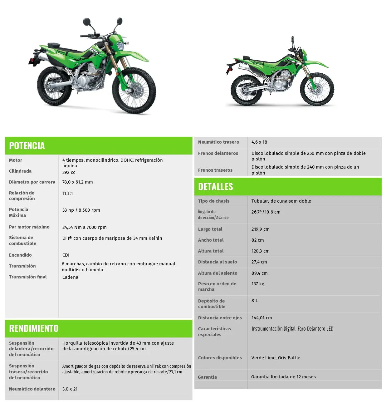 FICHA TÉCNICA KLX 300 2025 KAWASAKI