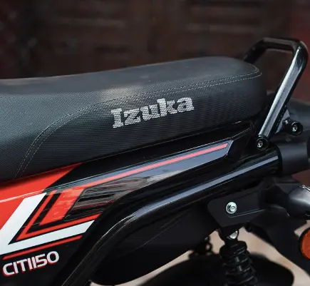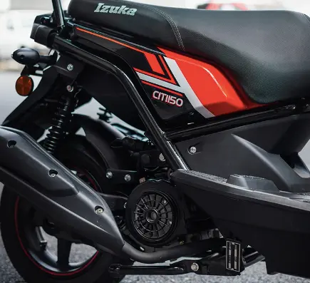 Izuka presenta esta motoneta Citi 150 OFF con las características y diseño más buscados en el mercado actualmente por los jóvenes sobre todo. Su motor monocilíndrico de 4T refrigerado por aire, 149.6 cc y una potencia de 8.2 hp a 7,000 rpm le permiten moverse muy bien en las grandes ciudades. Su transmisión Automática CVT y un depósito de combustible de 5.5 litros y un carburador como medio de alimentación complementan los elementos que forman que mueven esos 115 kg de peso contenido, claro más lo agregado por los ocupantes.