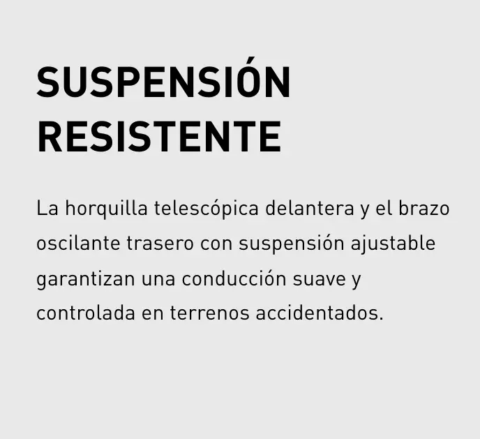 La avanzada tecnología y la continua investigación para su mejora, la hacen ideal para rodar por los caminos más difíciles, pero permitirá una conducción más fácil para largas aventuras en plena naturaleza.