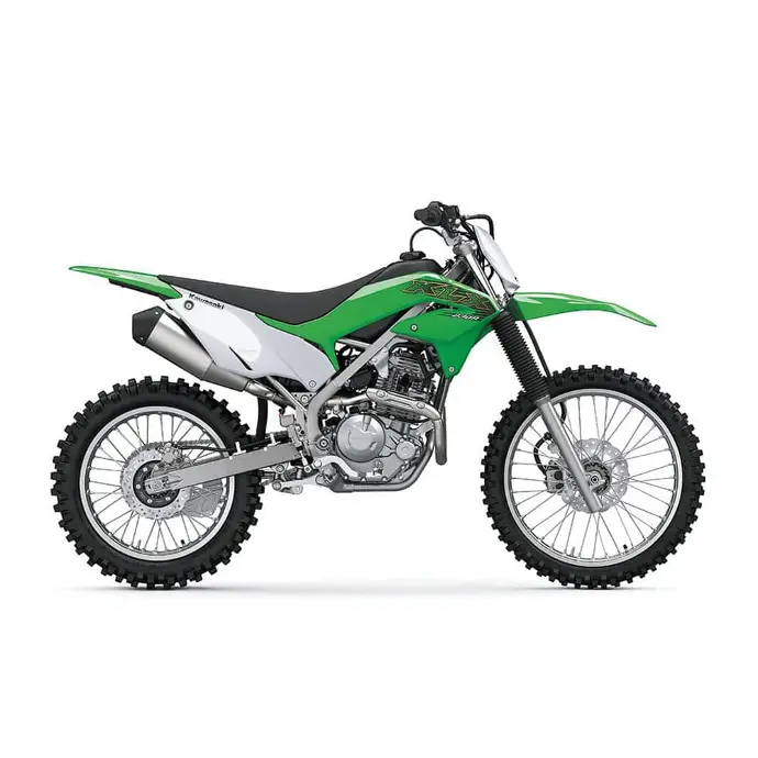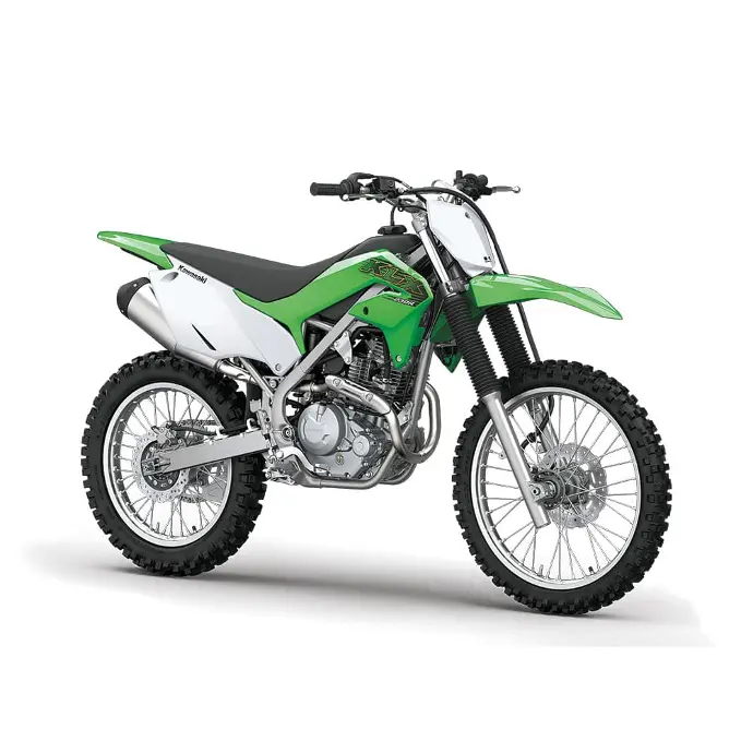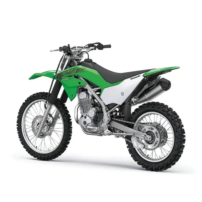 Con la KLX®230R, lo que importan son los senderos. Con una suspensión de largo recorrido, un peso ligero y una mayor distancia sobre el suelo, la KLR230R es la compañera ideal para las aventuras todoterreno. Un motor de cuatro tiempos refrigerado por aire de 233 cc genera una fuerza constante mientras que el arranque eléctrico y la inyección de combustible aseguran un rendimiento sin preocupaciones. El basculante de aluminio y la carrocería aerodinámica mantienen el peso lo más bajo posible para una diversión inmejorable y un rendimiento superior en su clase. Desaparece del mapa, escápate y juega con la KLX230R.
