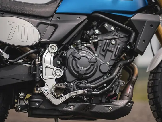 El buque insignia de la gama está equipado con el muy venerado motor bicilíndrico paralelo CP2 de Yamaha, que por primera vez abandona los modelos japoneses para adoptar un chasis italiano.